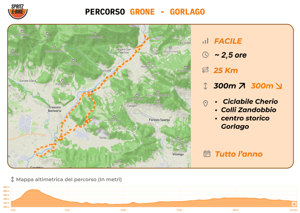 Esplora la Val Cavallina con Spritz E-Bike®: panorami mozzafiato in e-bike, seguiti da un rilassante aperitivo spritz. Avventura, relax e compagnia!